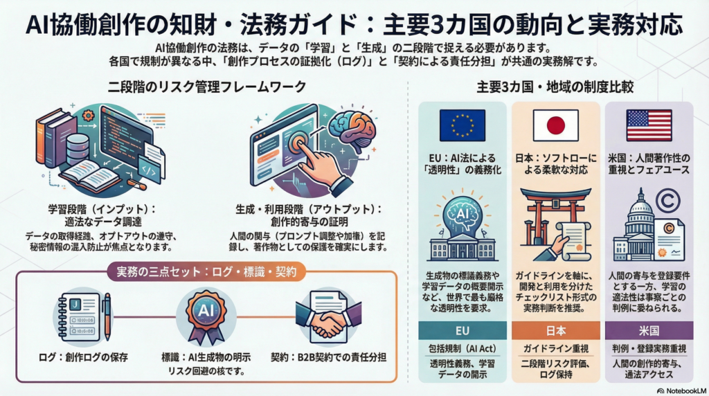 まとめ:制度は分岐しても、実務の共通解は「ログ・標識・契約」の三点セット