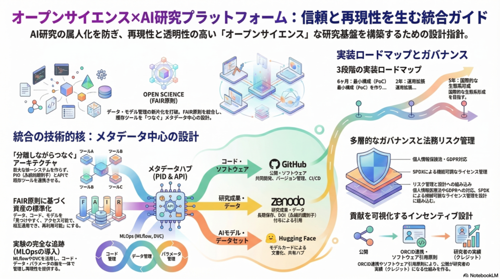 オープンサイエンスとAI研究プラットフォームを統合する方法|再現性・ガバナンス・実装ロードマップを徹底解説