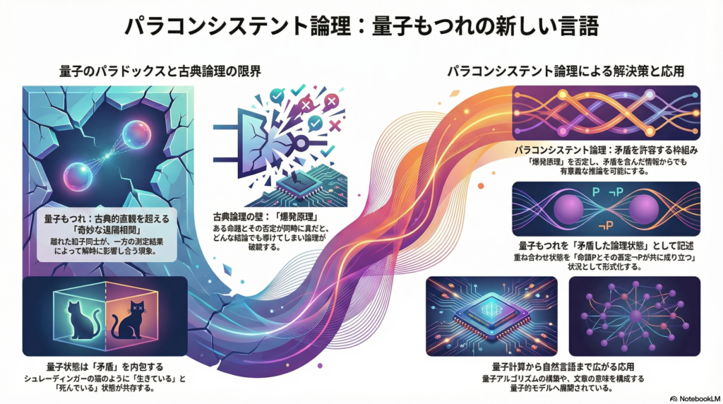 本記事では、パラコンシステント論理の基本概念から、量子もつれとの理論的接点、そして量子計算への応用まで、学際的な視点から解説していきます。