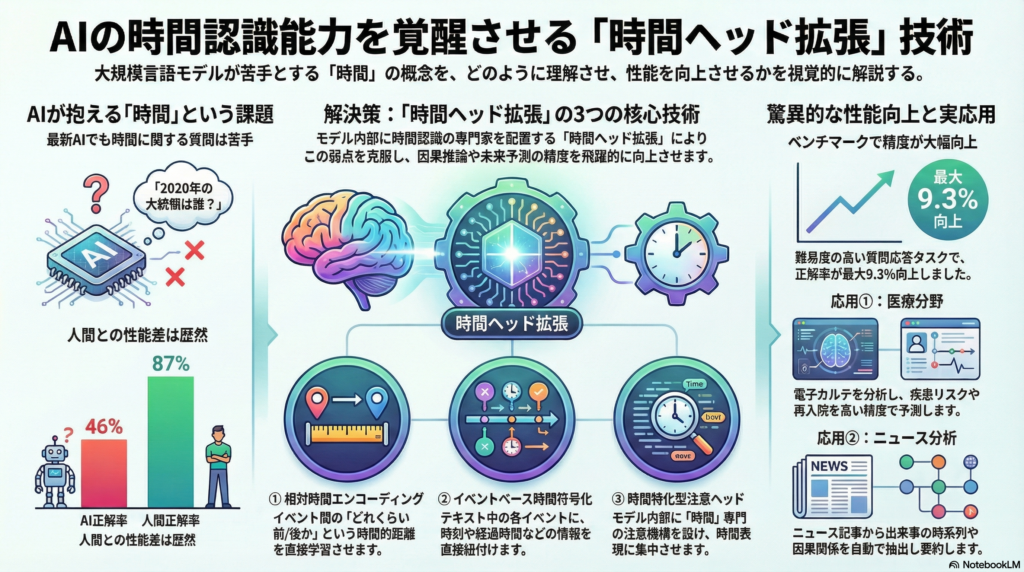 Transformerモデルの時間推論能力を飛躍的に向上させる「時間ヘッド拡張」技術の全貌